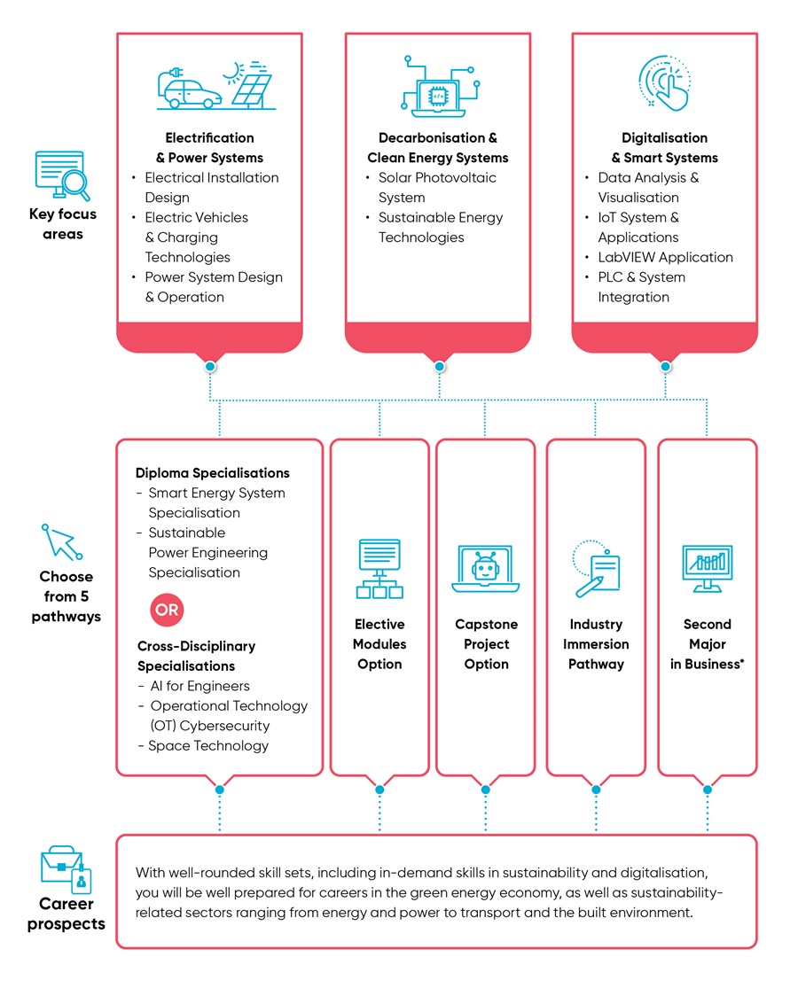 Select four electives to explore emerging technological trends and concepts. This option enhances your career resilience and keeps you competitive as Singapore’s energy landscape evolves.