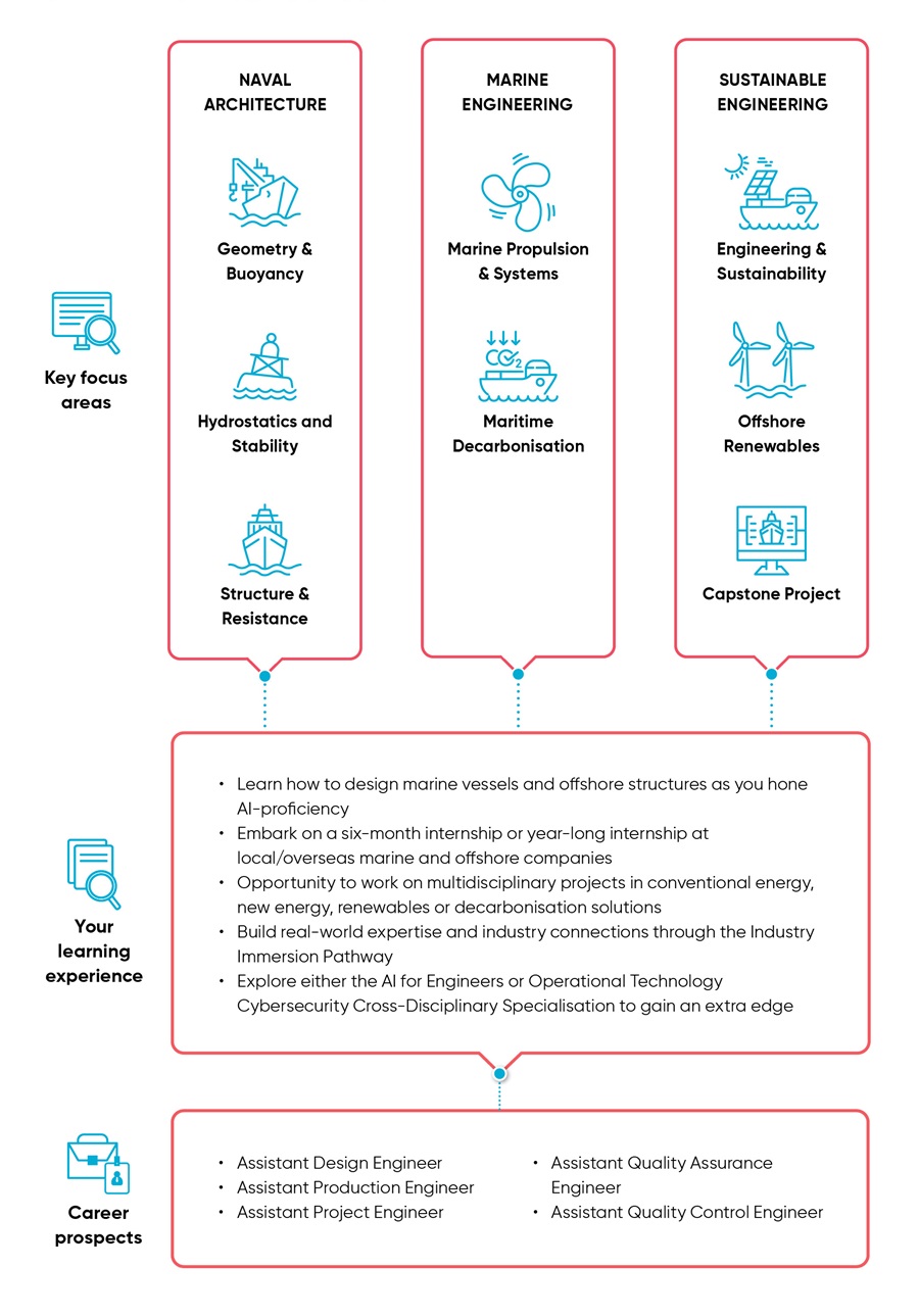 - Enjoy advanced standing for Naval Architecture & Marine Engineering degree with SIT-Newcastle University and related degrees with local or overseas universities