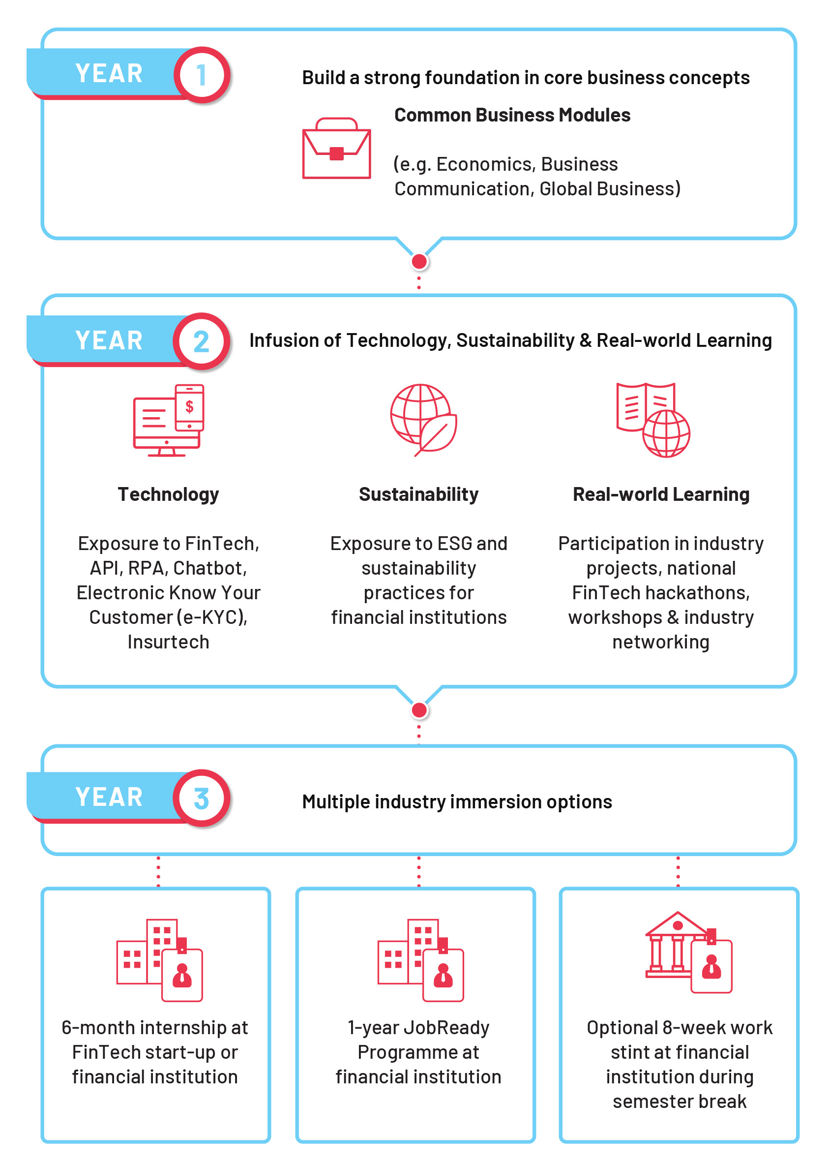 - Customise your learning: Choose a six-month local/overseas internship + Business Electives NEW! in emerging areas; or the one-year JobReady Programme with renowned companies