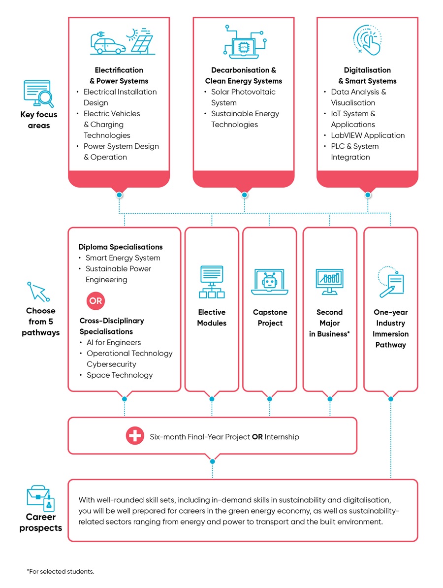 Select four electives to explore emerging technological trends and concepts. This option enhances your career resilience and keeps you competitive as Singapore’s energy landscape evolves. - Capstone Project Option