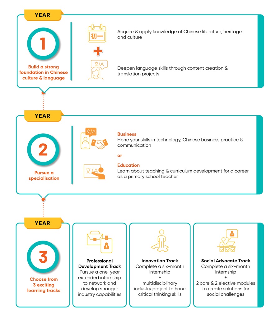 - Gain advanced Chinese language skills and bilingual business exposure through Singapore’s first and only diploma anchored in Chinese language, history, culture and heritage